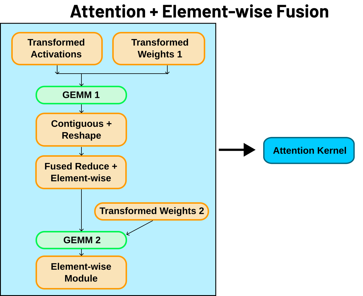 A common transformation is kernel fusion; where compatible operations are merged into a single kernel launch. Fusion reduces launch overhead and avoids extra reads or writes between host and device, which typically improves latency and throughput. By applying graph-level optimizations and choosing or generating efficient device kernels, MIGraphX delivers high-performance over uncompiled models and less optimized compiled solutions.