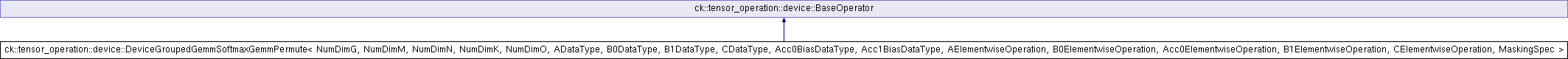 Inheritance diagram for ck::tensor_operation::device::DeviceGroupedGemmSoftmaxGemmPermute< NumDimG, NumDimM, NumDimN, NumDimK, NumDimO, ADataType, B0DataType, B1DataType, CDataType, Acc0BiasDataType, Acc1BiasDataType, AElementwiseOperation, B0ElementwiseOperation, Acc0ElementwiseOperation, B1ElementwiseOperation, CElementwiseOperation, MaskingSpec >: