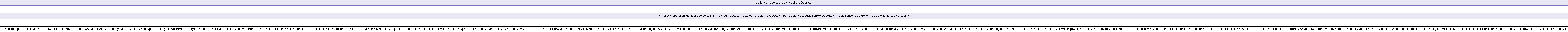 Inheritance diagram for ck::tensor_operation::device::DeviceGemm_Xdl_WaveletModel_CShuffle< ALayout, BLayout, ELayout, ADataType, BDataType, GemmAcEDataType, CShuffleDataType, EDataType, AElementwiseOperation, BElementwiseOperation, CDEElementwiseOperation, GemmSpec, NumGemmKPrefetchStage, TileLoadThreadGroupSize, TileMathThreadGroupSize, MPerBlock, NPerBlock, KPerBlock, AK1, BK1, MPerXDL, NPerXDL, MXdlPerWave, NXdlPerWave, ABlockTransferThreadClusterLengths_AK0_M_AK1, ABlockTransferThreadClusterArrangeOrder, ABlockTransferSrcAccessOrder, ABlockTransferSrcVectorDim, ABlockTransferSrcScalarPerVector, ABlockTransferDstScalarPerVector_AK1, ABlockLdsExtraM, BBlockTransferThreadClusterLengths_BK0_N_BK1, BBlockTransferThreadClusterArrangeOrder, BBlockTransferSrcAccessOrder, BBlockTransferSrcVectorDim, BBlockTransferSrcScalarPerVector, BBlockTransferDstScalarPerVector_BK1, BBlockLdsExtraN, CShuffleMXdlPerWavePerShuffle, CShuffleNXdlPerWavePerShuffle, CShuffleBlockTransferClusterLengths_MBlock_MPerBlock_NBlock_NPerBlock, CShuffleBlockTransferScalarPerVector_NPerBlock >: