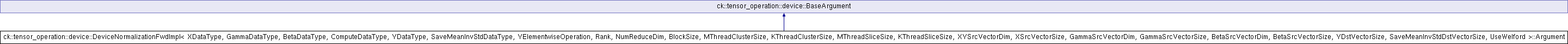 Inheritance diagram for ck::tensor_operation::device::DeviceNormalizationFwdImpl< XDataType, GammaDataType, BetaDataType, ComputeDataType, YDataType, SaveMeanInvStdDataType, YElementwiseOperation, Rank, NumReduceDim, BlockSize, MThreadClusterSize, KThreadClusterSize, MThreadSliceSize, KThreadSliceSize, XYSrcVectorDim, XSrcVectorSize, GammaSrcVectorDim, GammaSrcVectorSize, BetaSrcVectorDim, BetaSrcVectorSize, YDstVectorSize, SaveMeanInvStdDstVectorSize, UseWelford >::Argument: