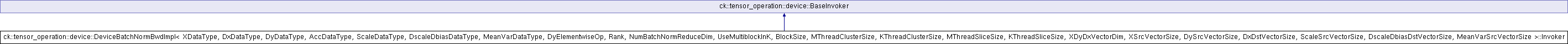 Inheritance diagram for ck::tensor_operation::device::DeviceBatchNormBwdImpl< XDataType, DxDataType, DyDataType, AccDataType, ScaleDataType, DscaleDbiasDataType, MeanVarDataType, DyElementwiseOp, Rank, NumBatchNormReduceDim, UseMultiblockInK, BlockSize, MThreadClusterSize, KThreadClusterSize, MThreadSliceSize, KThreadSliceSize, XDyDxVectorDim, XSrcVectorSize, DySrcVectorSize, DxDstVectorSize, ScaleSrcVectorSize, DscaleDbiasDstVectorSize, MeanVarSrcVectorSize >::Invoker:
