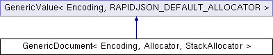 GenericDocument< Encoding, Allocator, StackAllocator > Class Template Reference#