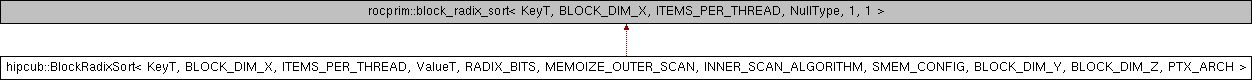 Inheritance diagram for hipcub::BlockRadixSort< KeyT, BLOCK_DIM_X, ITEMS_PER_THREAD, ValueT, RADIX_BITS, MEMOIZE_OUTER_SCAN, INNER_SCAN_ALGORITHM, SMEM_CONFIG, BLOCK_DIM_Y, BLOCK_DIM_Z, PTX_ARCH >:
