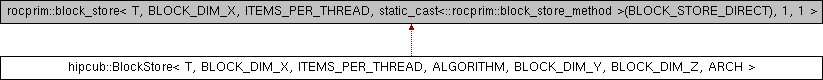 Inheritance diagram for hipcub::BlockStore< T, BLOCK_DIM_X, ITEMS_PER_THREAD, ALGORITHM, BLOCK_DIM_Y, BLOCK_DIM_Z, ARCH >: