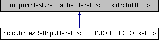 Inheritance diagram for hipcub::TexRefInputIterator< T, UNIQUE_ID, OffsetT >: