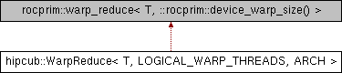 Inheritance diagram for hipcub::WarpReduce< T, LOGICAL_WARP_THREADS, ARCH >: