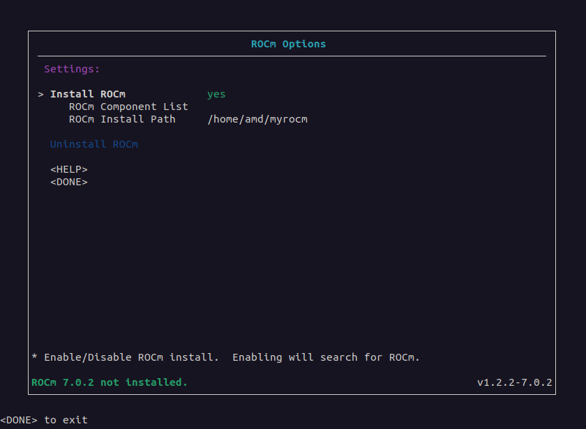 argument separately from the initial install of ROCm 7.0.2 to/home/amd/myrocm
