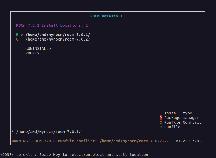 option can only remove ROCm if it was installed using the ROCm Runfile Installer. Traditional package-based ROCm installs will not be removed.uninstall-amdgpu