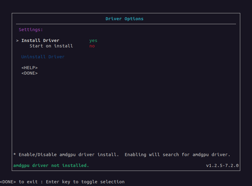 amdgpuoption to enable AMD GPU Driver installation.Note