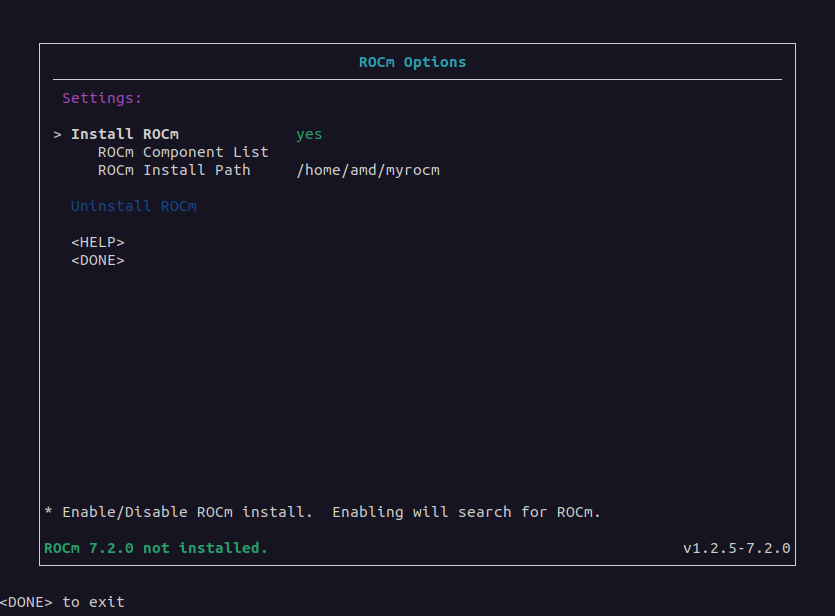 Like the GUI ROCm Options menu, the ROCm Runfile Installer can be configured to install ROCm, which can be installed in a specific location.