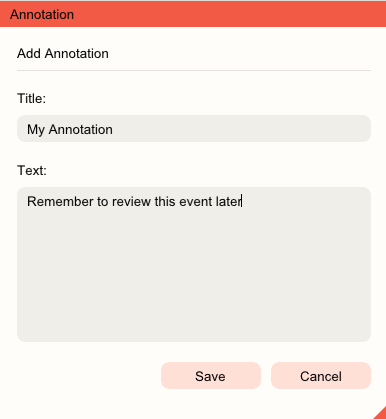 The Annotation dialog displays. Provide a title and your note, then click Save to create the annotation.