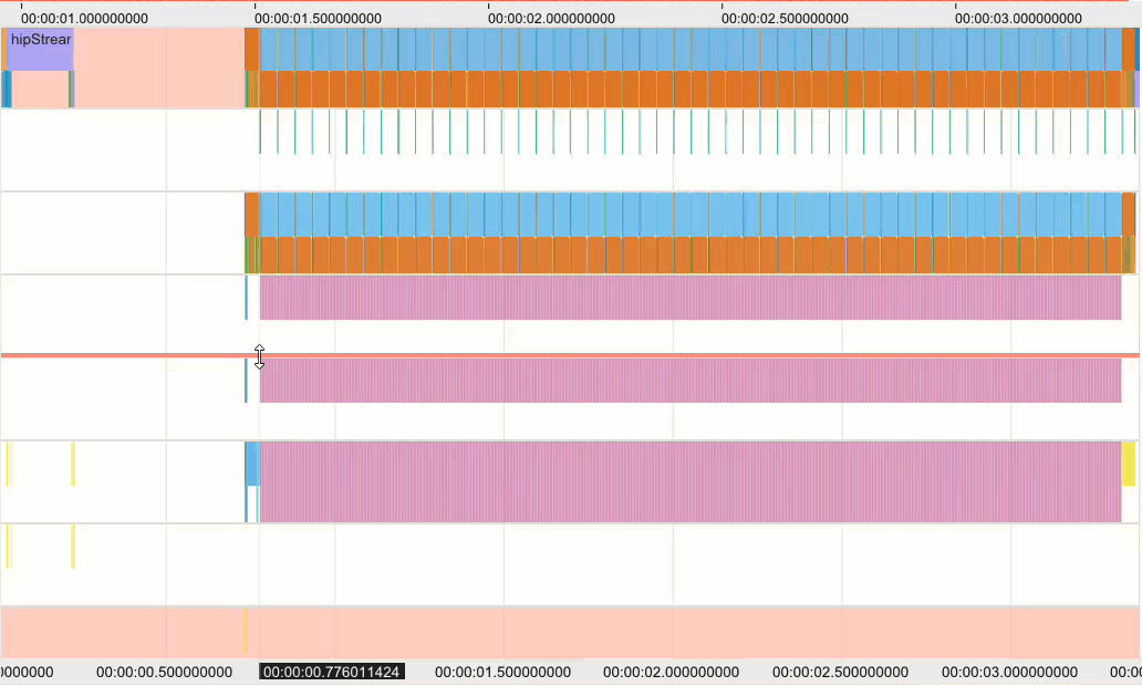 You can customize the data views of an open trace file in ROCm Optiq, including display settings, saved trace selections, added bookmarks/annotations, and more.