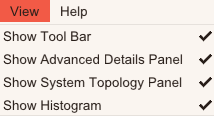 The View menu can be used to show and hide application panels.
