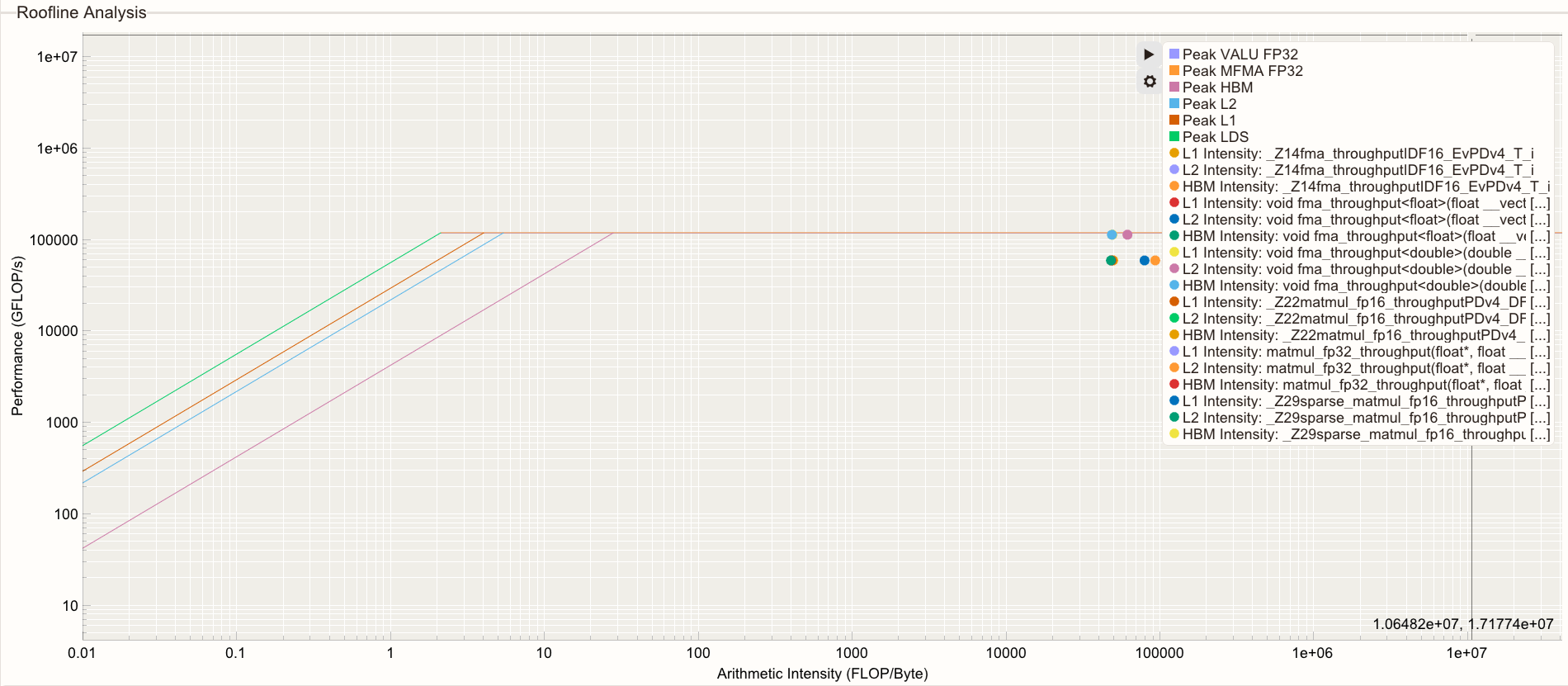 in the menu to show or hide rooflines or arithmetic intensity points.