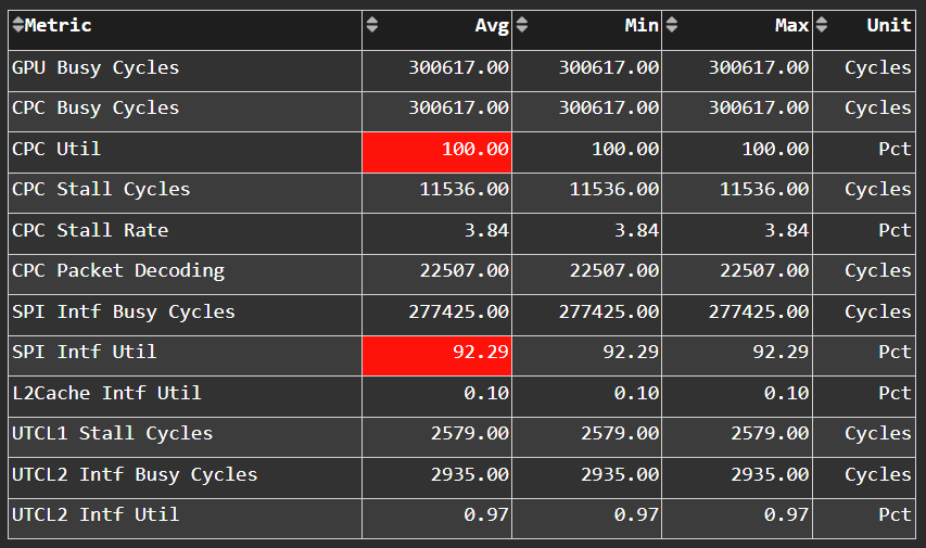 Detailed performance counters and metrics per hardware component, such as: