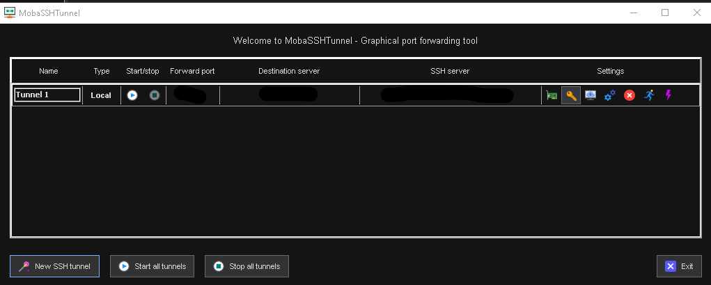 Configure the SSH tunnel.